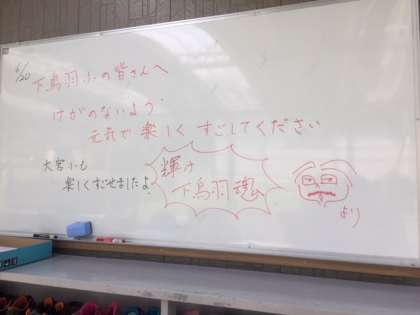 前校長の高宮佳彦先生が下鳥羽小の4年生に向けて,メッセージを残して行ってくれていました。大宮小学校のみんなは20日(土)の朝,みさきの家をあとにしていました。高宮先生とはちょうど入れ違いでした。