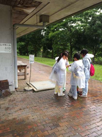小雨が降る中ですが,所内オリエンテーションの活動を続けています。班で協力しながら所内にあるいろいろなクイズに挑戦しています。