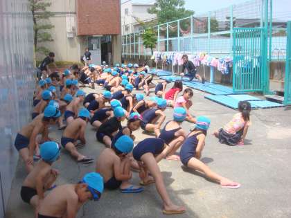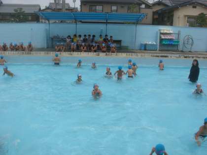 水温が低かったり,雨が降ったりして延期になることもあり,今日はプールに入れるとわかると,子どもたちは大喜び。