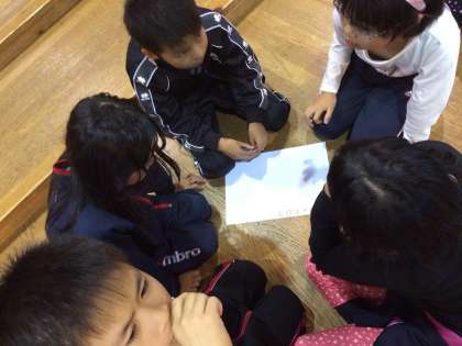 グループで協力して沢山の四画で書く漢字を考えていました。