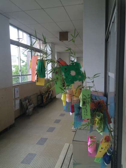短冊に願い事を書き,オリジナルの飾りを作りました。