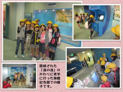 強い風と雨によって見学できなかった「渦の道」その代りに訪ねた架橋記念館でしたが,さまざまな展示物や体験コーナーは,なかなか工夫が凝らしてありました。子どもたちが夢中になっていたものもありましたよ。