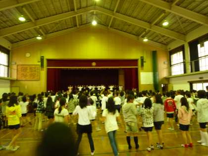 6年と5年の子が昼休みに運動会の準備体操の練習をしました。
