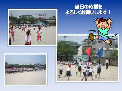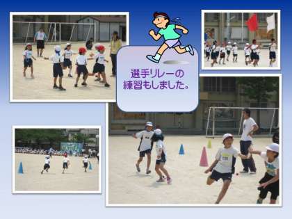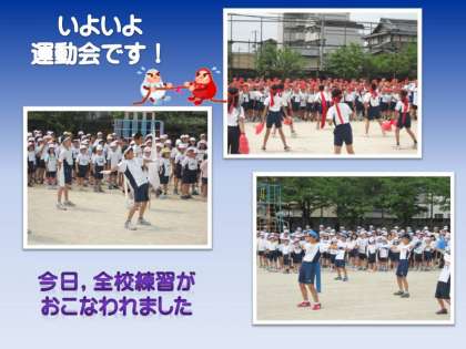 今日は暑いくらいのお天気になりました。昨日は激しい雨が降り,運動会の全校練習ができませんでした。そこで,今日に延期になった訳です。子どもたちは,入場行進の練習,応援やリレーの練習を行いました。練習とは言え,当日までにそう何回もできることではないので,真剣に取り組まねばなりません。暑さにややバテ気味の子どももいましたが,大きな声,力いっぱいの走りで全校練習を終えました。