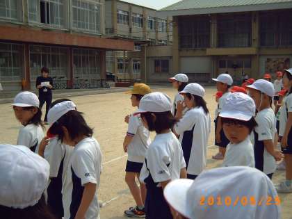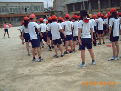 1・2時間目に,入退場の仕方や開閉式の練習・準備運動の練習などがありました。ひまわり学級の子ども達も色別に分かれて練習をしました。準備運動は,「嵐」の曲で知っている曲なので喜んでいました。ステップが難しそうでしたが,すぐにマスターして踊っていました。その後の色別の応援の練習も応援団を見て頑張っていました。運動会まであと4日です。楽しみにしておいてくださいね。