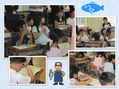 そこで,本校からもモデルとなる授業(師範授業)を公開するということになり,5年の先生が授業「日本の水産業」を行いました。委員会や他校から十数名の先生方が参観のために来校されました。