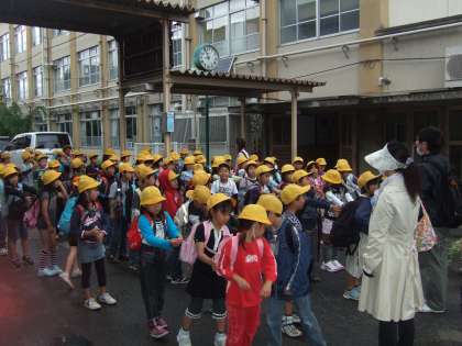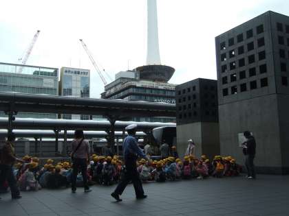 朝雨が残り社会見学ができるか心配しましたが,雨も止んで待ちに待った社会見学に出発です。子どもたちは大喜びです。子どもたちは,社会見学での注意事項をしっかり聞いて元気に出発しました。無事京都駅に到着しました。人の多さと建物の大きさにみんなびっくりしていました。
