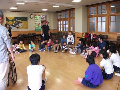 10月5日,伏見中学校・伏見板橋小学校・伏見住吉小学校・下鳥羽小学校の育成学級小中交流会を伏見中学校で行いました。久しぶりに出会う中学生(卒業生)は,すっかりお兄さん,お姉さんになっていました。自己紹介したり,チームに分かれてゲームをしたり,楽しいひと時を過ごしました。