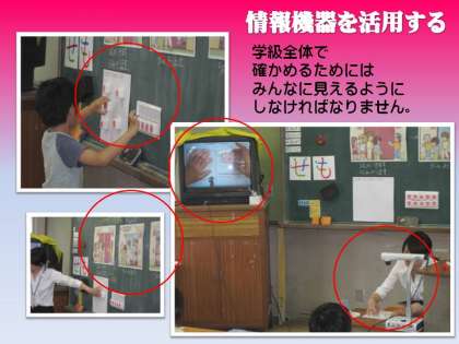 そして,それを全体で確かめます。書画カメラを使い,教師の手元をテレビに大きく映し出すことが有効ですね。黒板で大きなブロックを使って,子どもが操作をするのを全体に見せることもできます。