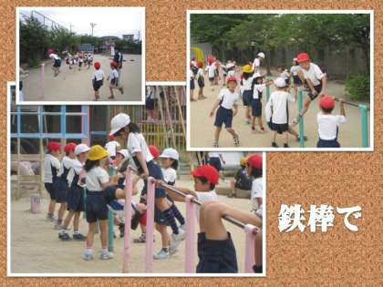 もう一つの学級は,横にある鉄棒の技を学習しています。どんなまわり方ができるようになったかな?