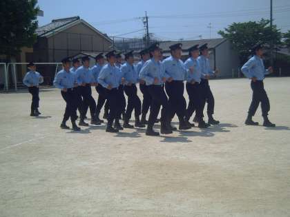 2時間目は,下鳥羽消防団の訓練を見ました。とても機敏な動きで「すごい!!」と感想をもらしていました。消防団の方と一緒に歩く練習をしました。大変暑い中でしたが,消防団の普段の訓練の様子を見ることで,地域とのかかわりを体験できました。