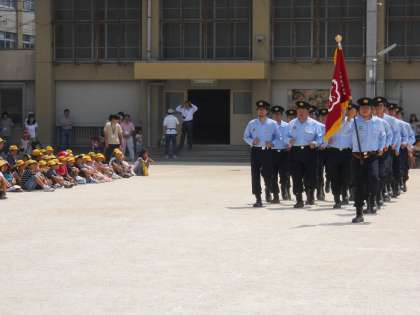 6月12日(土)土曜学習の日です。9時からの算数・国語の勉強後,「避難訓練・防災訓練」がありました。運動場に避難した後,下鳥羽消防分団による日常の訓練の様子を見学しました。地域を守るために日々訓練をしておられる分団員の皆さんのきびきびした態度に,子どもたちは「すごいなー!かっこいい!」と声を上げていました。
