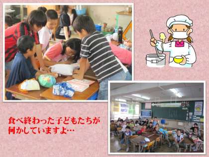 先日行われた交流給食。私が出張から大急ぎで帰ると,嬉しいことにまだ給食時間でした。カメラを持って校内を回ると,子どもたちの楽しそうな声が聞こえてきます。普段のように,同じ学級の友だちばかりと食べるのではなく,他の学年の友だちも一緒に食べるということが,何だか気持ちを浮き立たせているのでしょうか。みんなとても楽しそうでしたね。