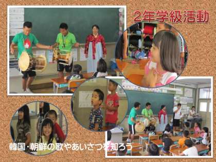 みんなで挨拶の言葉を教えてもらったり,歌を楽しく歌ったりしました。中でも圧巻だったのは,“チャンゴ”(朝鮮半島に伝わる民族楽器の太鼓)の演奏,“チマ・チョゴリ”(女性用の民族衣装)の披露,民族に伝わる歌の独唱などにおいて,他の学年の先生たちが授業に参加してくれた場面です。さすが練習をしてくれていただけあって,子どもたちも大喜びでした。いい授業でした。