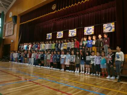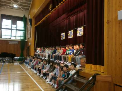 今日は1年生を迎える会がありました。これまで一生懸命がんばって練習してきた「さんぽ」の歌や,お礼のことば,とってもじょうずに言えました!!2年生から6年生までのお兄さん・お姉さんたちにプレゼントしてもらった歌も,とってもすてきでした。