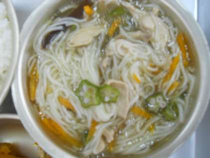 7月7日(水)今日は,七夕の日です。職員室の入口に飾られた笹飾りが風に揺れています。今夜は,「彦星」と「織り姫星」が見られるでしょうか?夜空が楽しみです。給食の献立にも「たなばたそうめん」がでました。そうめんを天の川に,切ったオクラを星にみたてています。あっさりとしていてとてもおいしかったです。