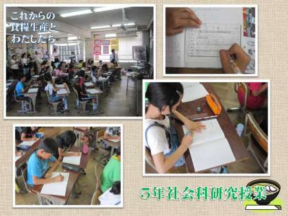 昨日は,5年社会科の研究授業「これからの食料生産とわたしたち」が行われました。子どもたちは,身近な食べ物の原材料はどこで作られているのかをさぐりながら,わが国の食料自給率が,外国に比べてもかなり低いことに気づきます。このことからわが国の食料生産について関心を高めるというのが,今日の授業のねらいです。そこで考えたことは次のようなことです。
