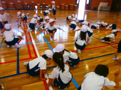 体育では,虫になりきって,たくさん体を動かしたり,ダンスをしたりしています。みんなのお気に入りは「ちょうちょう」です。