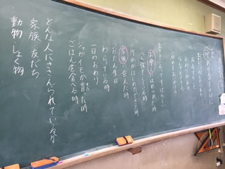 子ども達は,「家族に出会えたこと」「笑っていること」「ごはんを食べているとき」など,生きることの素晴らしさをたくさん感じているようでした。学習の最後には「どんあ命も大切にしなければならない」「給食も感謝して食べよう」「友達を大切にしよう」等,命のあるものを大切にしようとする思いを持つことができました。