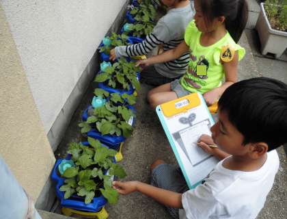 「つるつるの葉っぱと ざらざらの葉っぱがあるよ!」