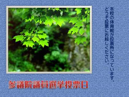 本日は,参議院議員選挙の投票日です。本校も投票所になっています。どうぞ投票にお越しください。