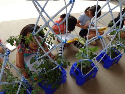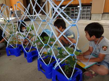 生活科で育てている野菜の苗の観察を通して,かんさつ名人を目指します。