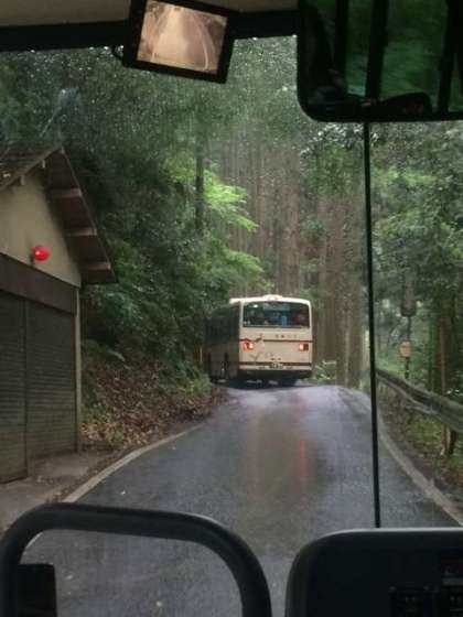 いよいよ花背峠の山道に入ってきました…酔う人が出なければいいのですが。