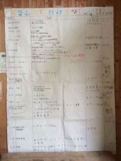 今年は生活保健と食事の係の人たちが、大きな日程表を作ってくれました!