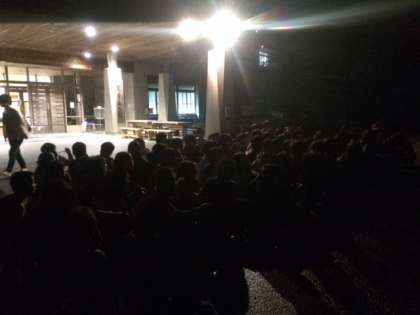 外は真っ暗、虫の声や川の音が聞こえます。