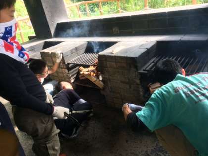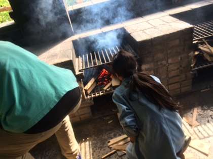 かまど係さんが一生懸命火をおこしてくれています。