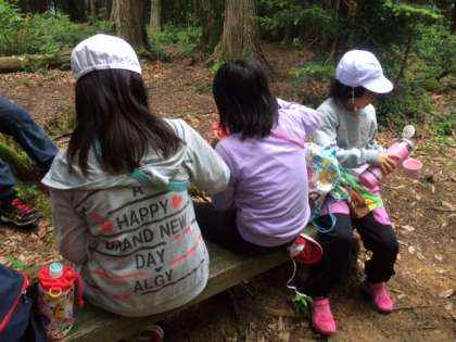 ハイキングの途中、先生のいるポイントでちょっぴり休憩タイム。