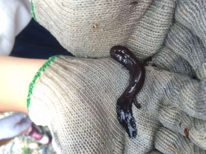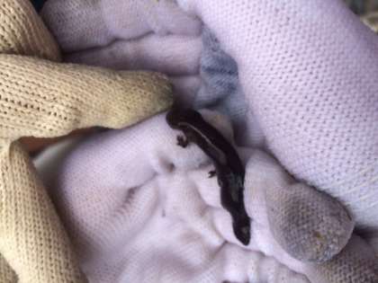 なんと!川辺で天然記念物のオオサンショウウオを発見!