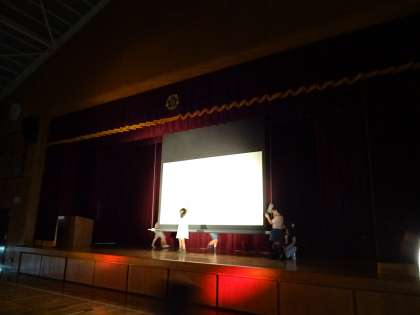 そして今日は特別に,体育館でライトを当てて作品を映し出してみました。