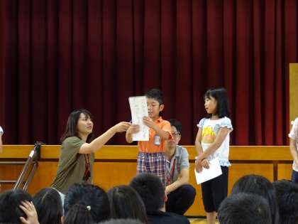 6/13(月)の1時間目に,人権朝会が行われ,2年生は代表2人がそれぞれのクラスの人権目標を発表しました。
