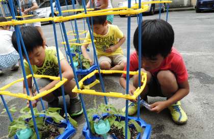 子どもたちからは,「ジャックと豆の木みたいにどんどん伸びてきている!」や「どこまで伸びていくのかな」など,素敵な気づきがありました。