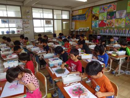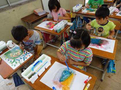 6/14(火),絵の具を使って色の学習をしました。前日から,自分の絵の具を使うことを楽しみにしていた子どもたち。図画工作科で「色のさんぽ」を体験です。