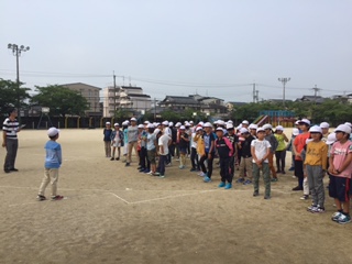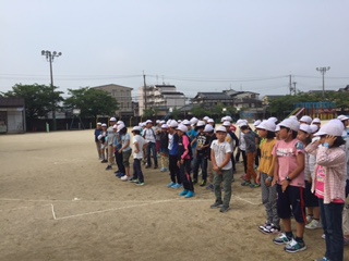 4年生全員が集まり,運動場で出発式をしました。