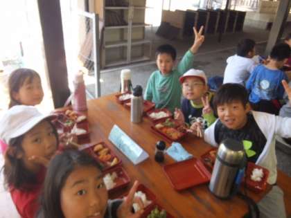 2日目の昼食は野外炊事場でお弁当です。みさきでは初めてのお弁当!
