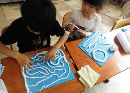 できたひもを組み合わせて,めいろや動物など,いろいろなものを作ることができていました。
