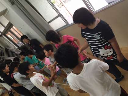 ボール送りゲームをしたり,じゃんけん列車をしたり,一緒に歌ったり。