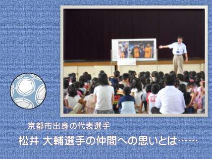 京都市出身の松井 大輔選手が駒野選手の肩を抱いて,一緒に涙を流していました。松井選手のお父さんが「息子が素晴らしいプレーで活躍してくれたことも嬉しいが,仲間への思いやりを見せてくれたことがもっと嬉しい。」と語っておられたとの報道があります。松井選手は駒野選手と小学生の頃から,サッカーを通した友だちであったと言います。勝った喜びも,負けた悔しさも共に分かち合う友だちだったのです。