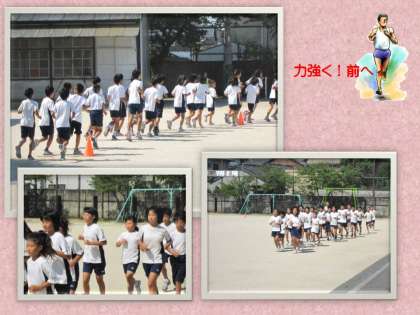 陸上部は,朝の早いうちに練習をするようにしています。自分の持つタイムを少しずつ縮めようと,懸命に練習をしています。大きな目標に向かうには,部員みんなが心を一つにして練習していかねばなりません。