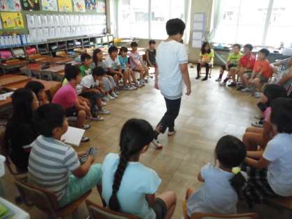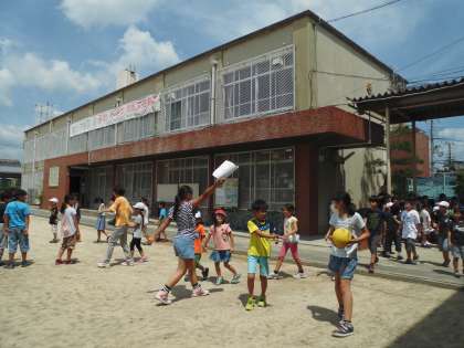運動場ではドッジボール・おにごっこ,教室ではフルーツバスケットなどをして遊んでいました。暑い中でもみんな元気いっぱいに楽しんでいました。