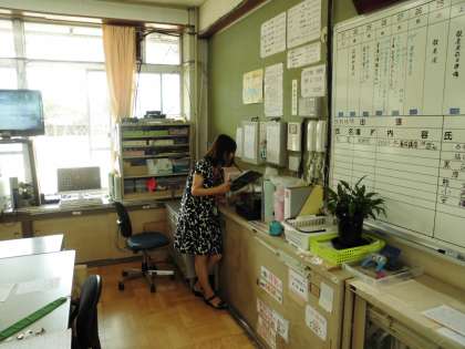 職員室では,教頭先生が校内放送をしてくださっていました。