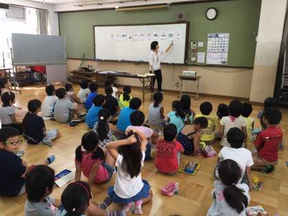 今回の学習内容は,のりもの(vehicles)・数(number)・ハロウィンでした。みんな大きな声で英語で乗り物の名前や数を英語で発音していました。