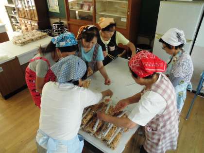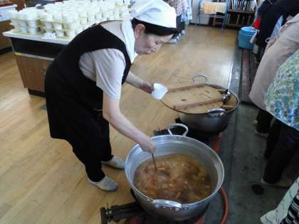 女性会,PTA役員,自主防災会のみなさんのご協力により,炊き出し訓練も行われ,家庭科室でアルファ化米とお味噌汁が調理されました。