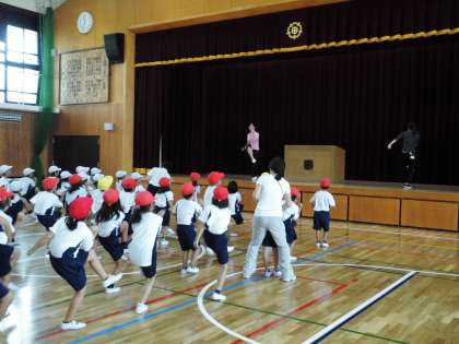 体育館から心地よい音楽が流れてきました。体育館をのぞいてみると,1年生が一生懸命踊っていました。みんなとってもかわいいです!!!