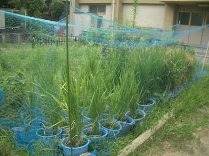 5年生の夏休み,雨らしい雨も降らず,晴天が続いたため,出穂となりました。 めでたしめでたし。