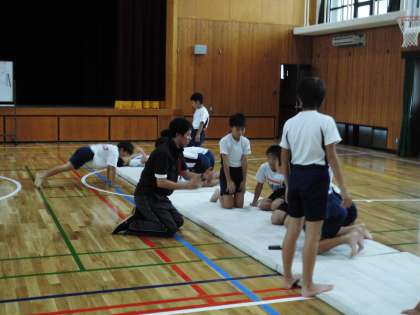9月30日(金)5・6校時 6年「団体演技」の練習 今度は腰を・・・と思ったら,ちがいました。よかった!!!
