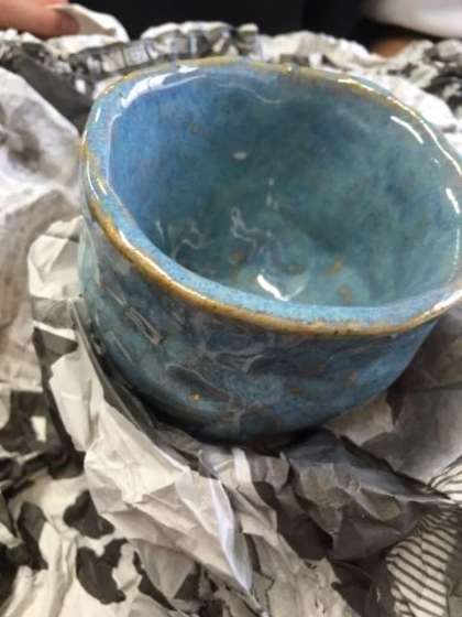 子どもたちが形作った陶器に,釉薬が塗られ,きれいに焼きあがって手元に戻ってきました。